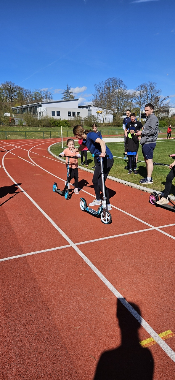Am Samstag ging es nach dem Leichtathletiktraining zu einer Schnupperstunde im Ringen. Am Nachmittag stand dann das beliebte Rollerrennen auf dem Plan. Dieses Jahr wurden 15 Paare aus Kindern und ihren Eltern gebildet und es galt je eine 400m Runde zu laufen und eine 400m Runde zu rollern. Diese 1.600m-Challenge gewannen dieses Jahr Annelie Klute mit ihrem Vati Michael. Im Anschluss ging es zur Athletik. Dann wurde sich mit Handball und Unihockey ausgespielt. Und auch die Eltern fanden ihren Lieblingssport und schmetterten sich beim Volleyball so manchen sehenswerten Ballwechsel über die Netzkante. Am Abend ging es zum Bowling. Aber auch danach war der Tag noch nicht zu Ende. Für die Kinder ging es auf Nachtwanderung und es galt in der von Familie Erbert erstellten Geschichte, den Ostereierdieb – einen Fuchs- zu jagen. Im dunklen Wald hatte dann doch so manch kleiner Sportler Muffensausen, während die Älteren die Runde relaxt meisterten.